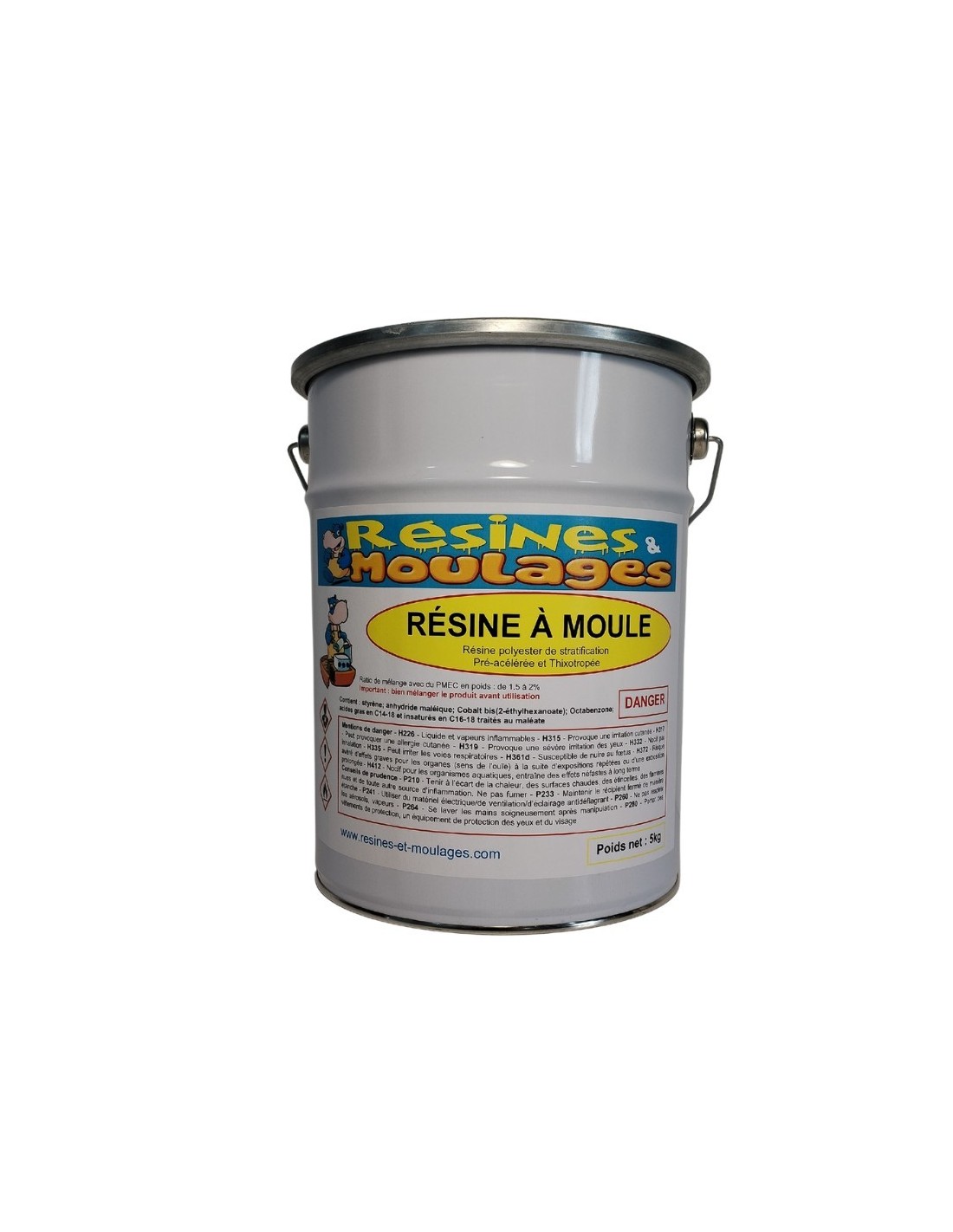 Résine polyester sans retrait pour la fabrication des moules, pré accélérée, thixotropée en bidon de 5 kg ou de 20 kg (4 pots de 5 kg chacun)