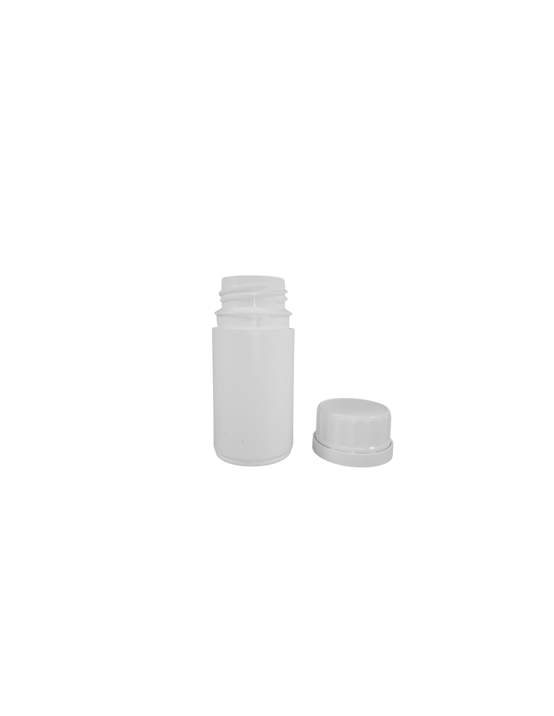 Flacon rond blanc en PEHD (Polyéthylène Haute Densité) pour tout produits, réutilisable un certain nombre de fois